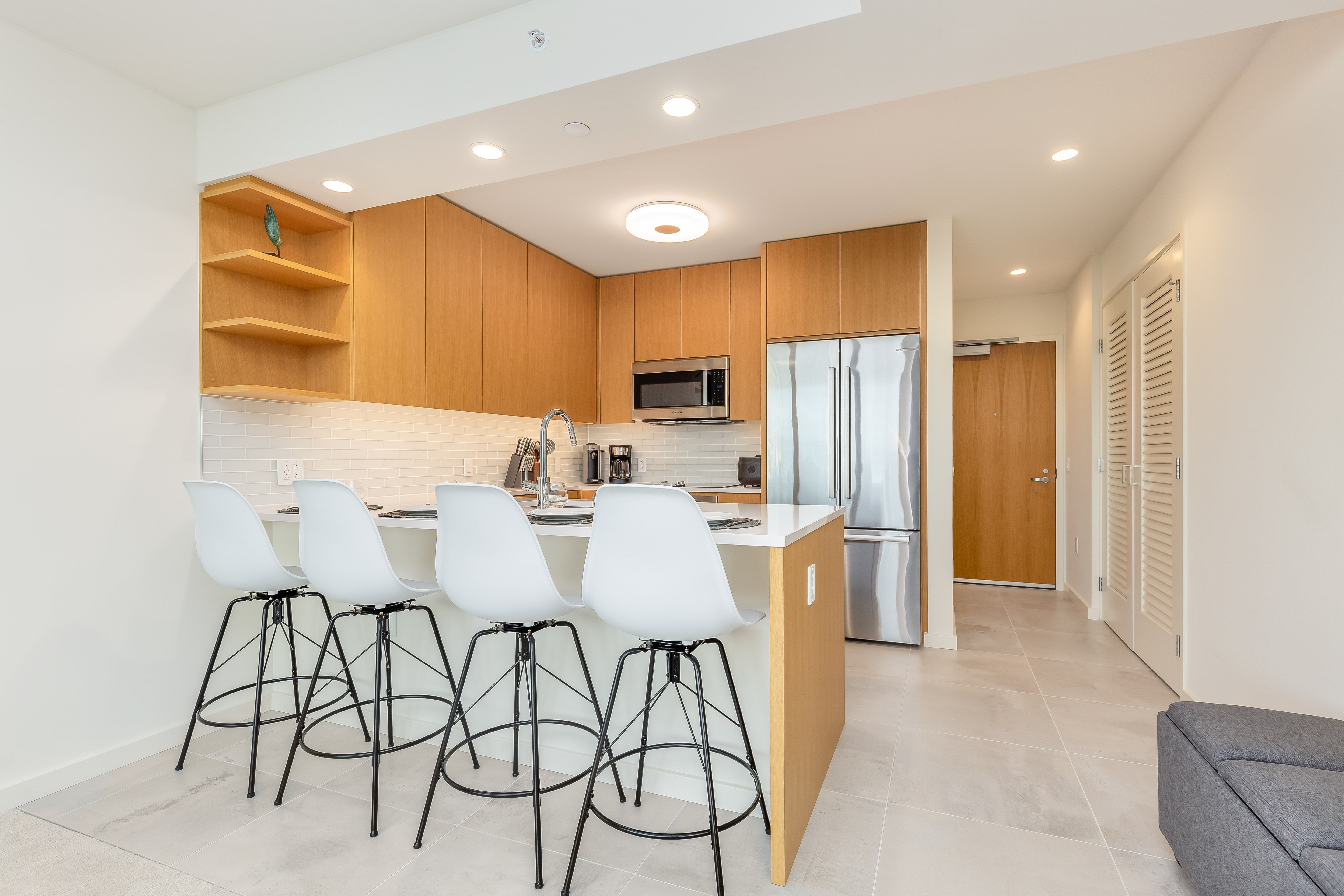 Kitchen and Island with 4 Stools
